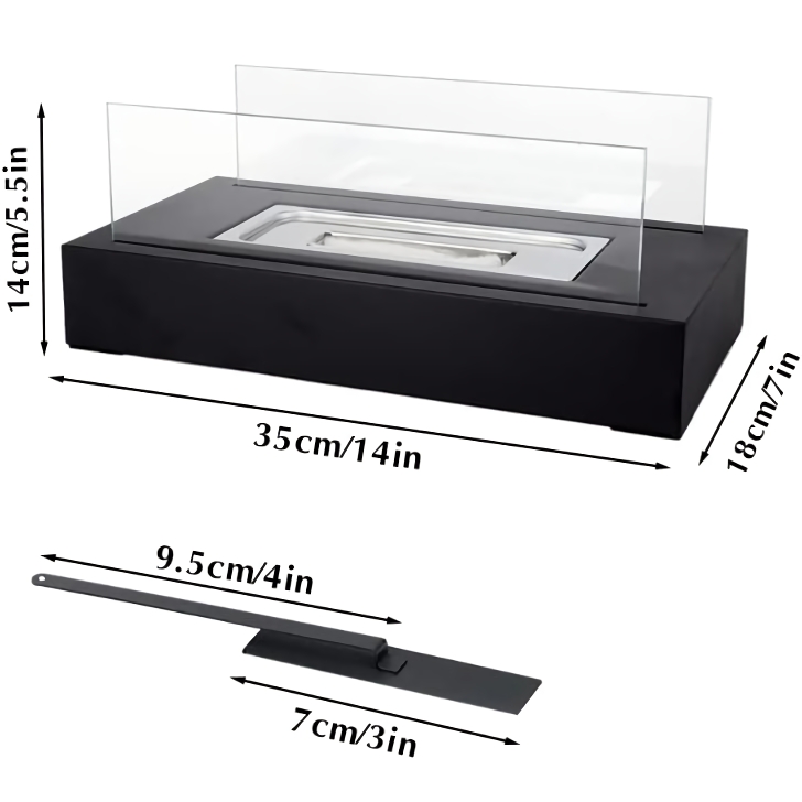 Our ethanol fireplace is distinguished by its ease of use and elegant design. It’s a rectangular bioethanol stove that’s both lightweight and durable, making it perfect for desktops or any room in your home. Its portability ensures you can also bring the warmth outdoors, ideal for gatherings, dinners, or simply relaxing under the stars.